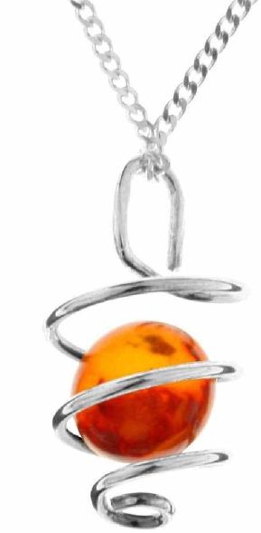 - Die freibewegliche Bernsteinkugel im spiralförmig gewickelten Käfig macht diesen Anhänger besonders interessant.